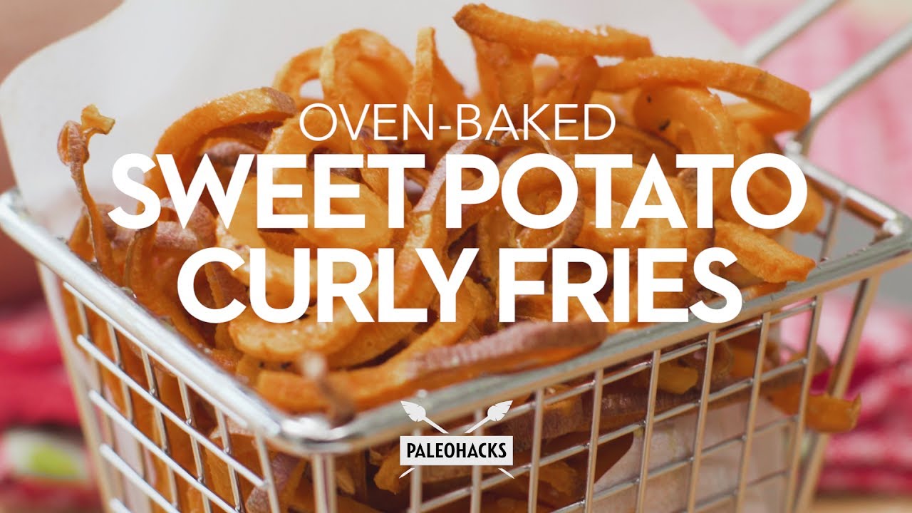 Oven Baked Sweet Potato Curly Fries Paleo Recipe Youtube